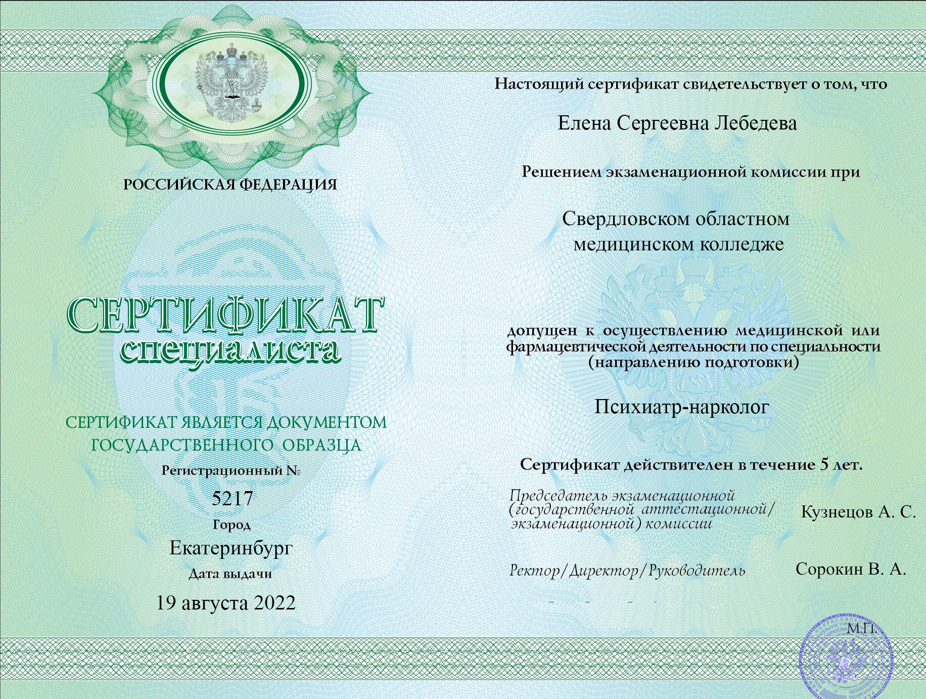 Елена Сергеевна Лебедева врач нарколог клиники доктора Стукаловой в Совхозном